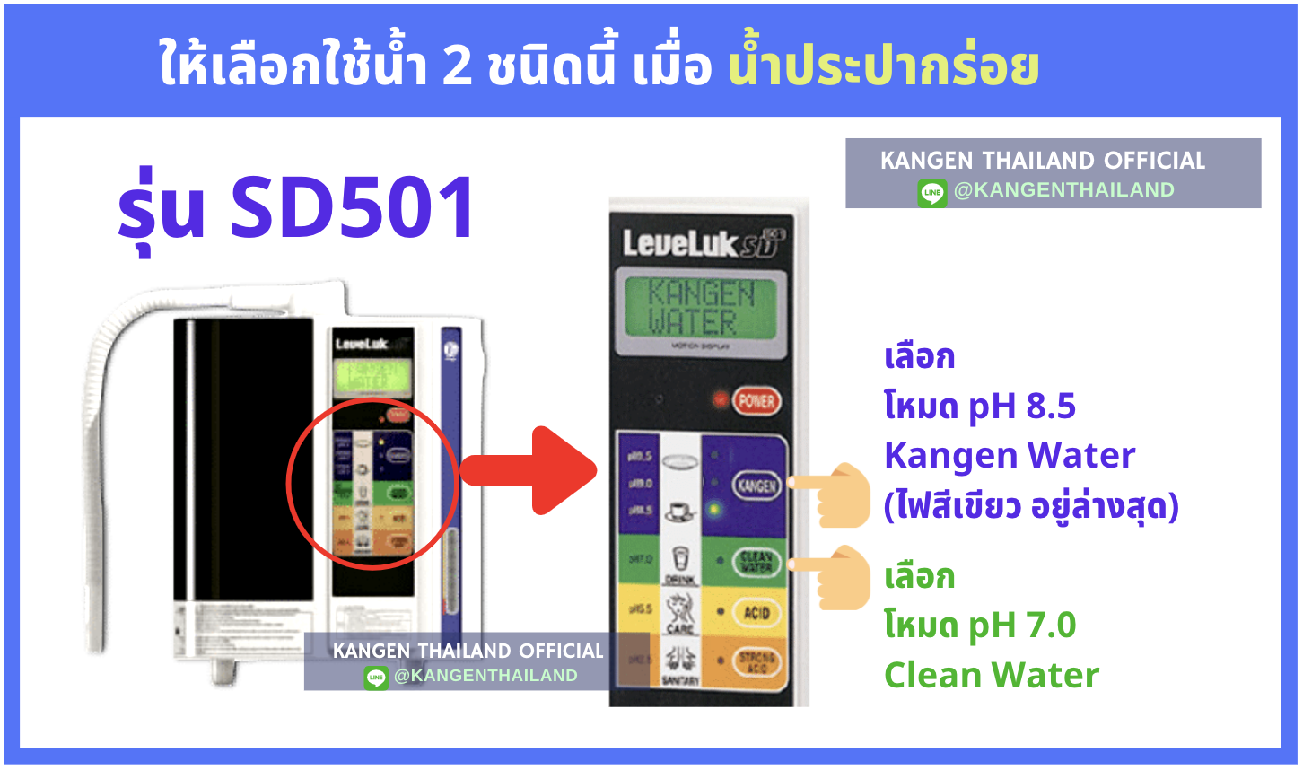 สำหรับเครื่องรุ่น SD501 ให้เลือกดื่มที่ pH 8.5 หรือ pH 7.0 ตามรูปด้านล่างค่ะ